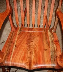 Closeup of the seat and arms of the Carob rocking chair by Walt Wogee rockingchairsbywogee.com
